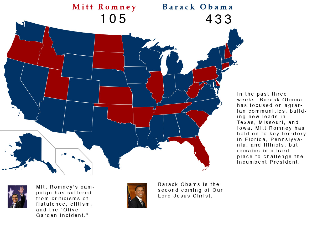 Overview This project attempts to satirically engage the world of informatics attached to American Presidential political discourse. The generativity enabled by the Processing programming language and the Rita library work hand in hand to create endless political situations to satiate the ravenous American public, who has incresingly become obsessed with following such information through major media outlets, and specialty blogs like fivethirtyeight.com . The high level of computation necessary to create electoral college maps such as the one depicted in this project lead consumers and pundits to check in incessantly for changes and variables of consequence. To that end, this project compliments total electoral figures with generated political commentary. This commentary attempts to explicate the results in the map, generating poltical rationale for successes and failures. In the end, the endless generativity of political situations and commentaries to support them point to two conclusions: that political discourse and its complimentary media coverage are empty, but simultaneously, the uniquity of every year's political landscape based on the large number of situations this interface can produce. Process This project grew out of the discovery of an electoral map program (very basic) on the wikipedia entry for the Processing language. From that code, I worked with Matt Jacobs to develop a generative map that would endless recompile (and recolor) the map for new political situations. With that map working, I started trying to figure out how to make a "official looking" CNN-esque election informatic display. I eventually created a mock-up (below) for roughly what I wanted my interface to look like. After developing the mock-up, I went about beginning to build generative political commentaries. They began very basic, and then developed a little more complexity. I realized at this point that the more I controlled the variables, the less dynamic the project felt, but it also had a more distinctive narrative arc. If I kept Republicans bumbling, and Democrats succeeding for instance, then the project had a certain humor and satrical slant, which I liked. After integrating this otherwise seperate act of grammar generation, the project began to really take shape. The next (most difficult) task that I faced, was getting the map to generate Electoral vote totals. I felt very clever when I suddenly struck on how to do this; I created an array of int variables, all of which reflected the electoral vote value for the state located in the same position in the state string array. This meant that when I gave a state to the democratic candidate, the value in the same position [i] was pulled from the electoral value array and added to a Democratic total. I then merely subtracted the Democratic total from the total available electoral votes (538, hence the blog name) and had a working republican total. Conclusions At the present (3/2) I feel that this work has a lot of potential but still needs a lot of work. Which is unfortunate because it is due today, and I don't know when I will have more time to work on it. The two tasks that really need to be completed are integration between electoral values (which states are won by whom) and grammar feedbacks so that the candidates selected by the generative grammar can be "known" by my interface and addressed appropriately by the text. I would also like to add more to the project, developing perhaps a "generative political ad" to run as a sort of banner ad in the corner, and photos of the candidates to display with short profiles. Clearly there is a lot of work to do. That said, I very proud of the work I got done on this in the last two weeks. I've learned a lot about working in the processing environment (including the great advantage of working with SVG files for hierarchy and the ability to rewrite settings) as well as teh Rita library and its immense value for textual generation. I was initally put off by what I consider a really tired genre of electronic writing (generatie text) but have found that by thinking in terms of total packages, a lot of power can be built on this modules